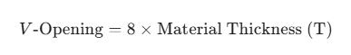 Standart yumuşak çelik için, V-kalıp açıklığını seçerken genel kural şöyledir: